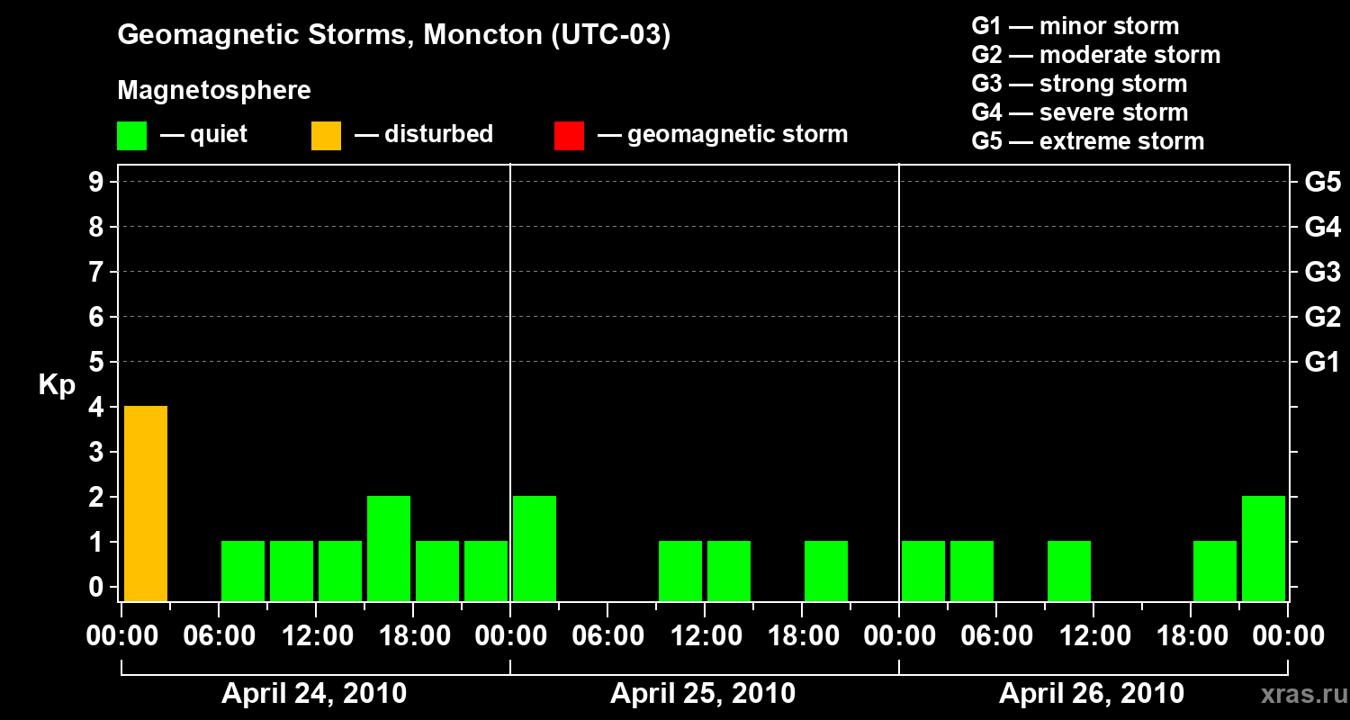 Geomagnetic storms in Moncton — Apr 26, 2010