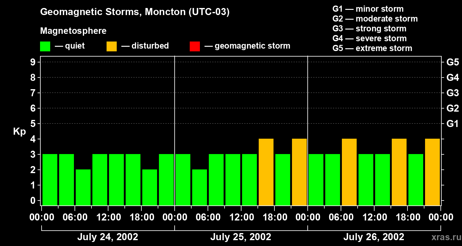 Geomagnetic storms in Moncton on Jul 26, 2002