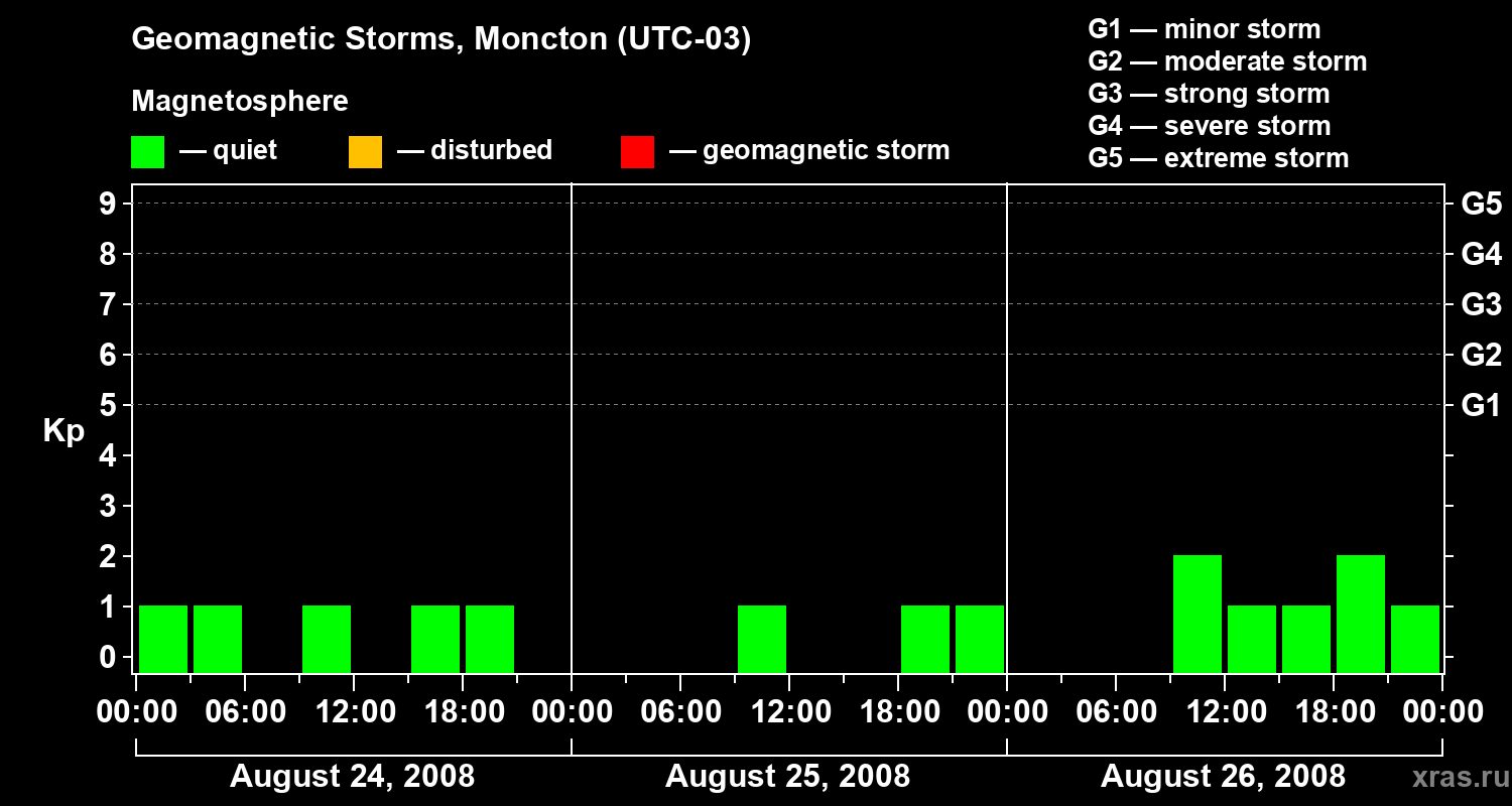 Geomagnetic storms in Moncton — Aug 26, 2008