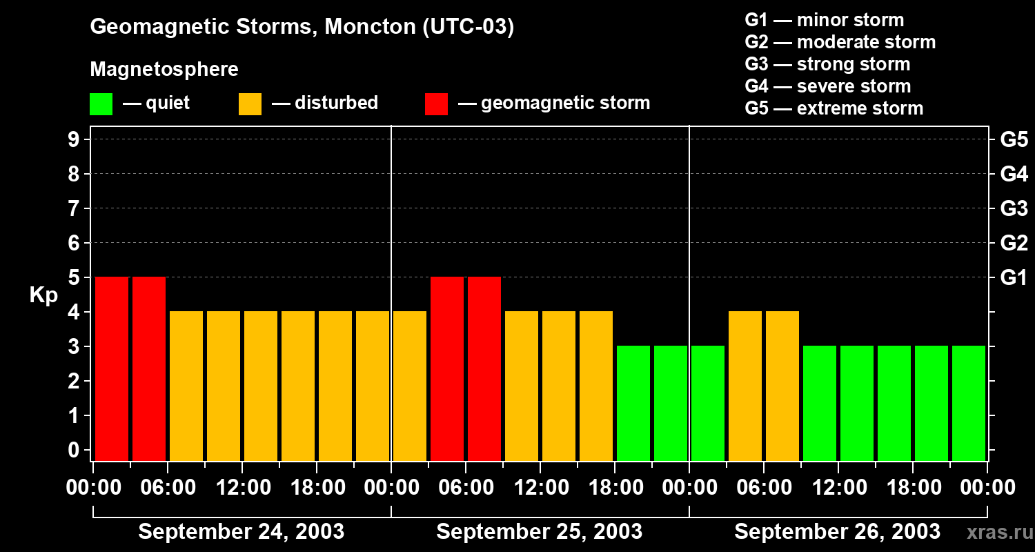 Geomagnetic storms in Moncton on Sep 26, 2003