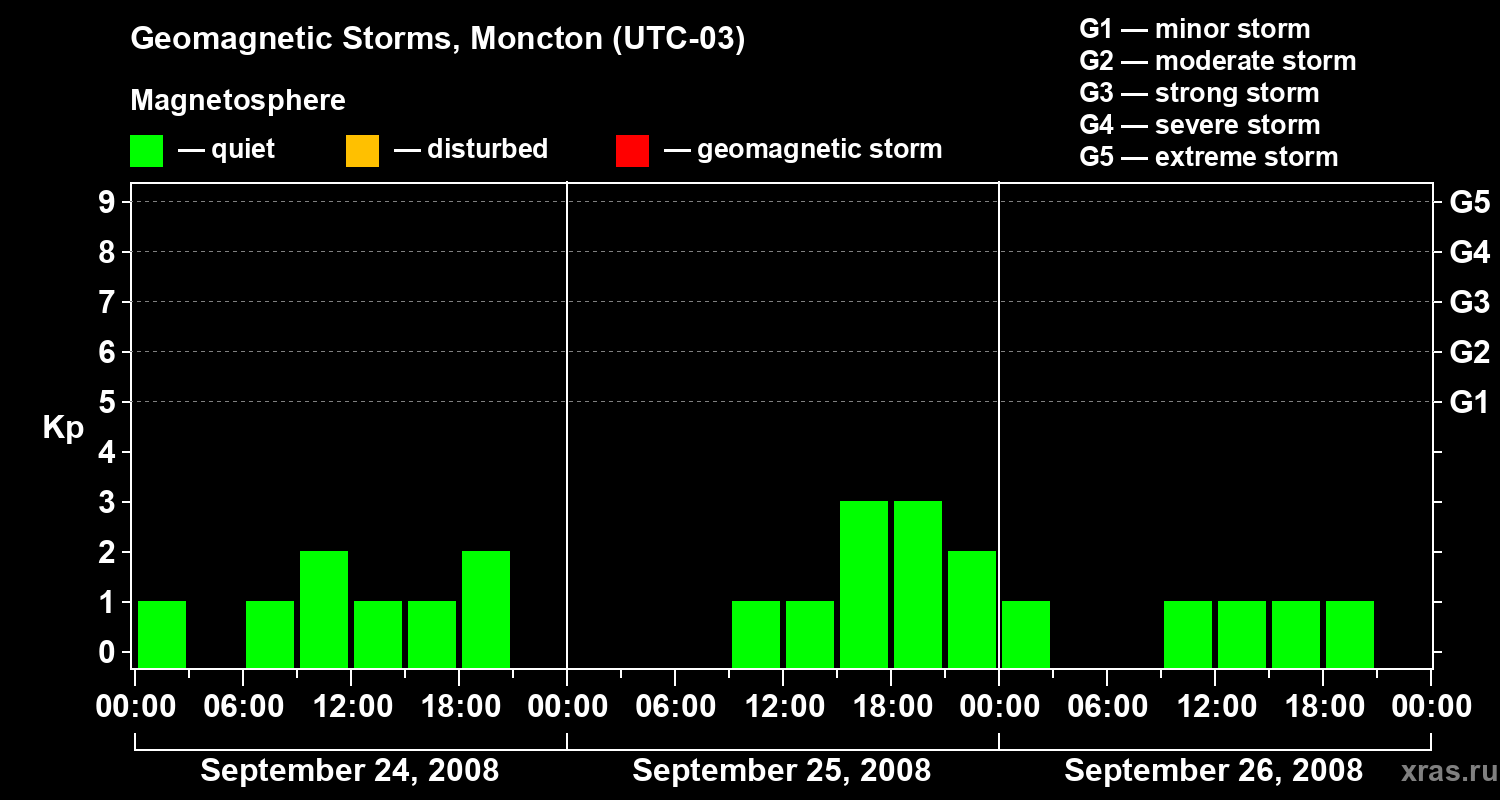 Geomagnetic storms in Moncton — Sep 26, 2008