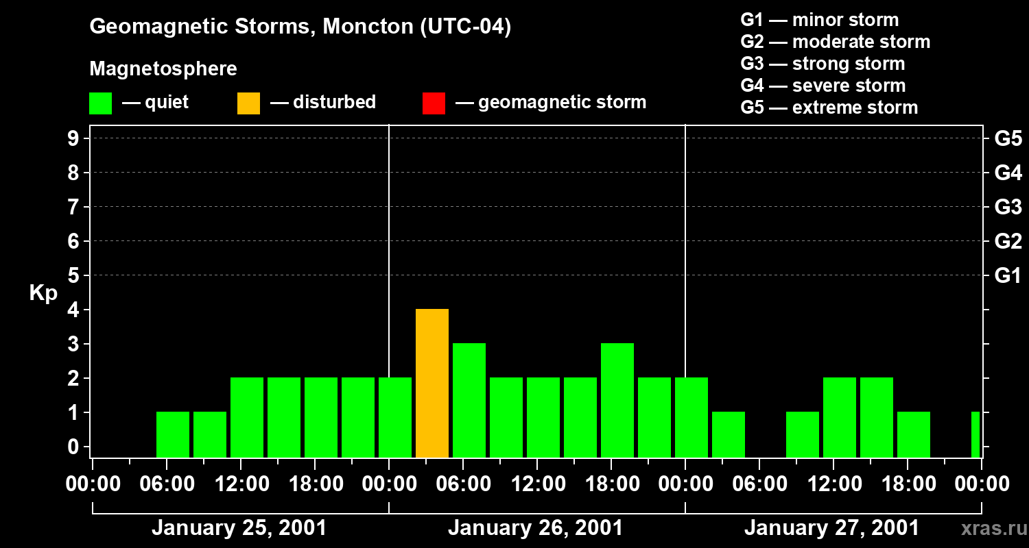 Geomagnetic storms in Moncton on Jan 27, 2001