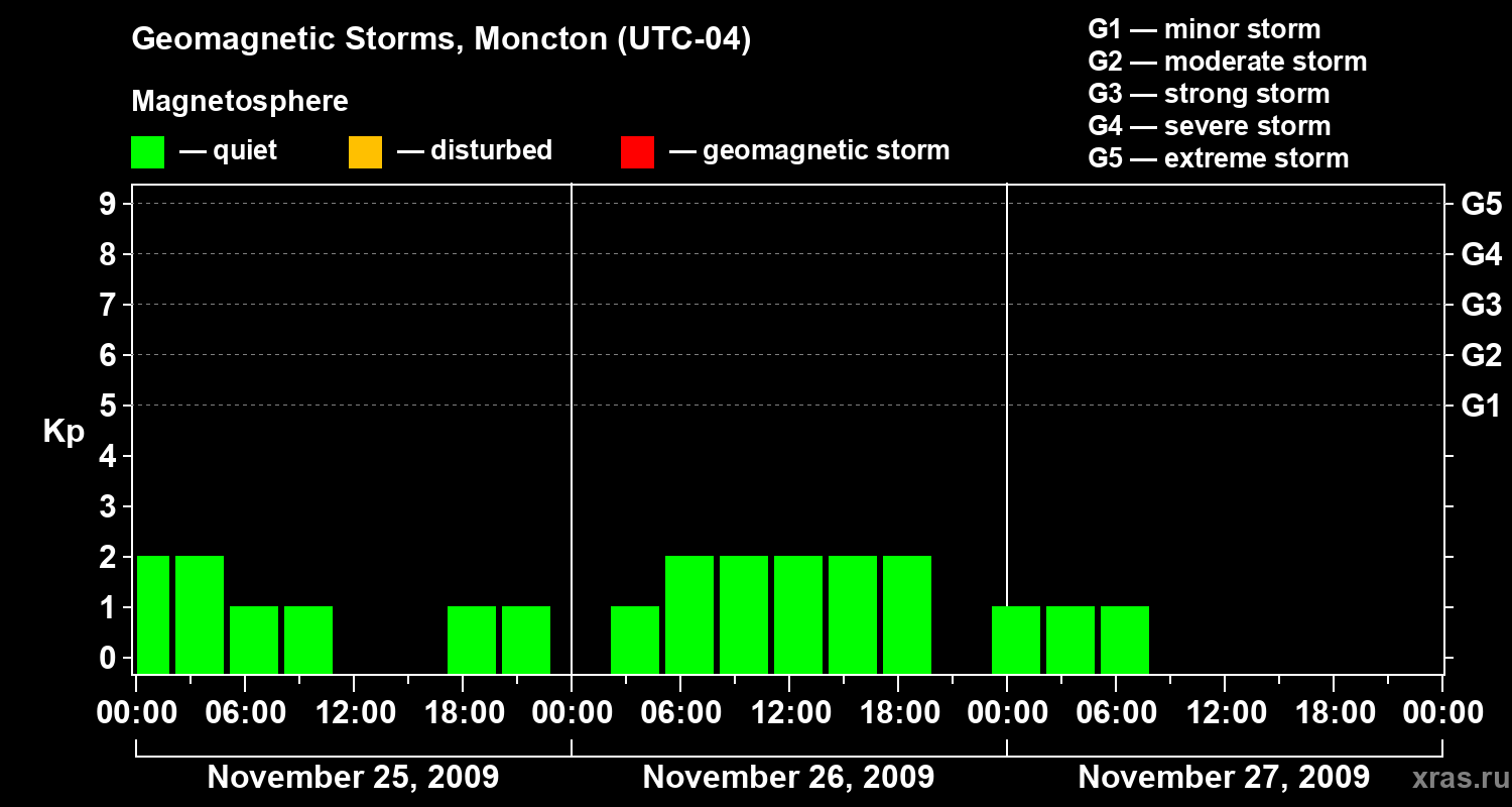 Geomagnetic storms in Moncton on Nov 27, 2009