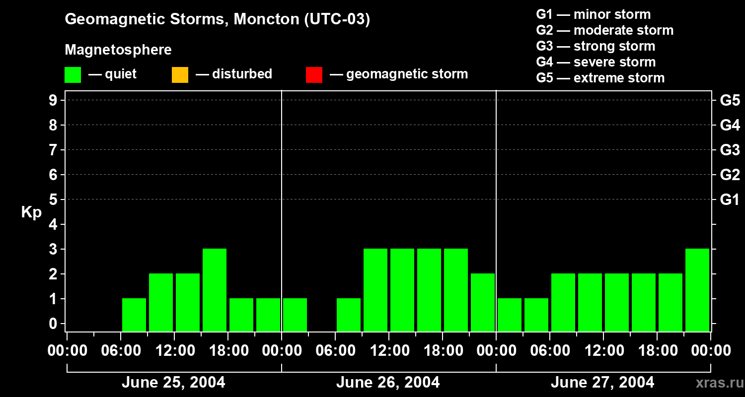 Geomagnetic storms in Moncton on Jun 27, 2004