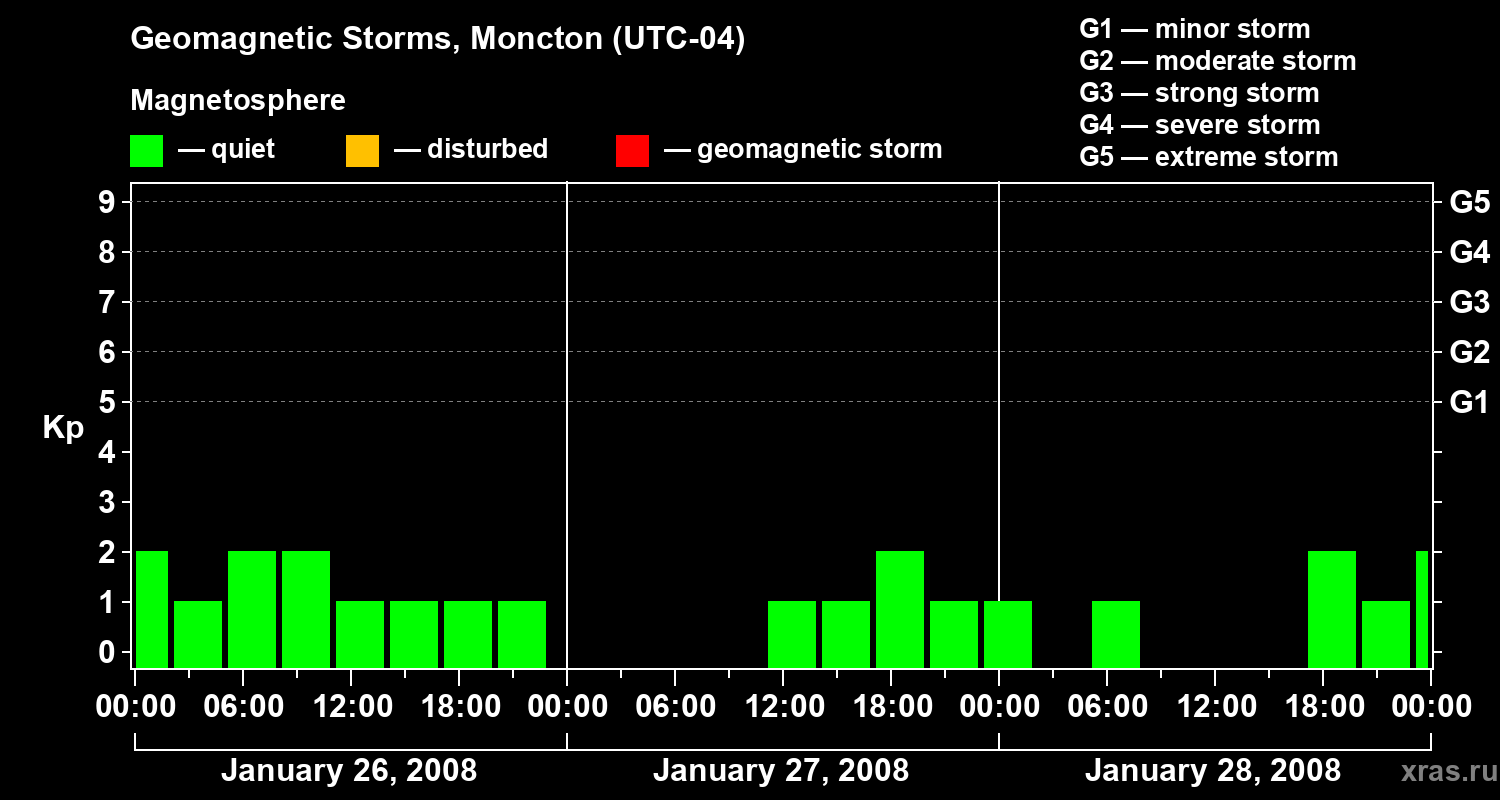 Geomagnetic storms in Moncton on Jan 28, 2008