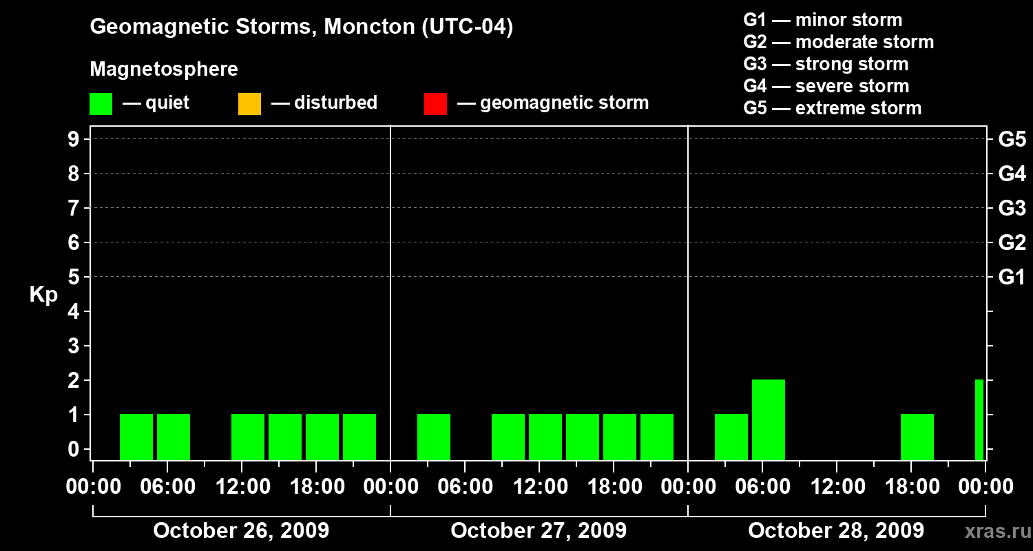 Geomagnetic storms in Moncton — Oct 28, 2009
