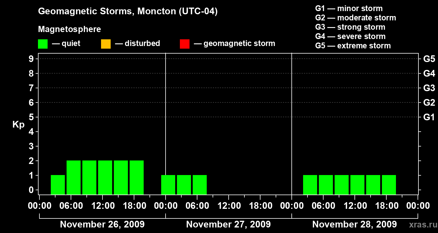 Geomagnetic storms in Moncton on Nov 28, 2009