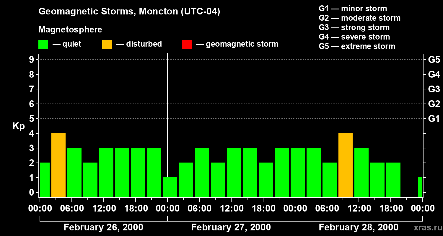 Geomagnetic storms in Moncton — Feb 28, 2000
