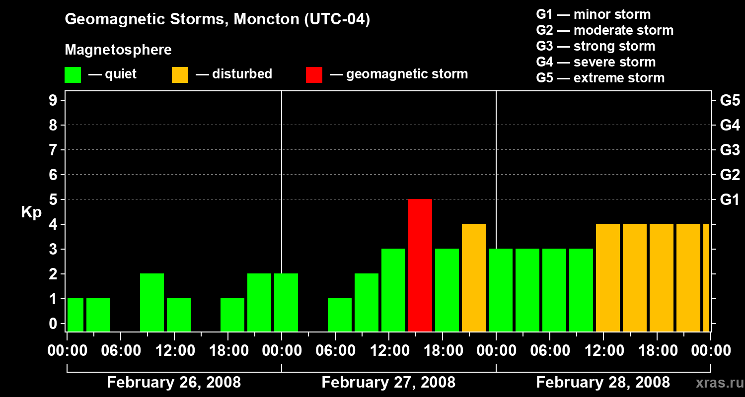 Geomagnetic storms in Moncton — Feb 28, 2008