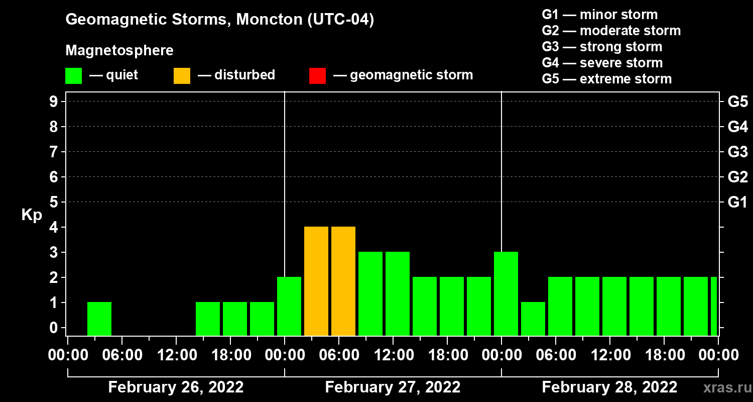 Geomagnetic storms in Moncton — Feb 28, 2022