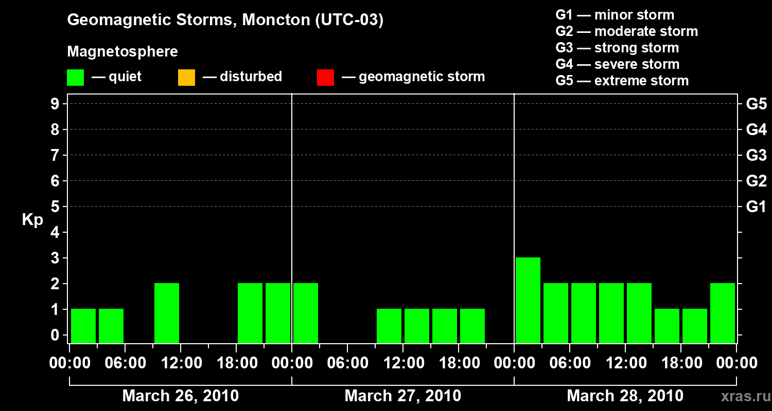 Geomagnetic storms in Moncton — Mar 28, 2010