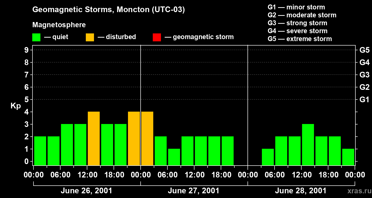 Geomagnetic storms in Moncton on Jun 28, 2001