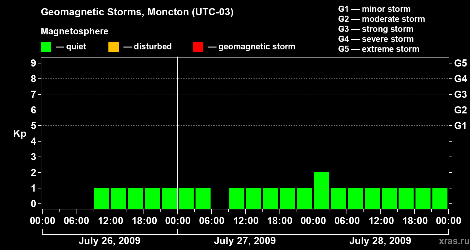 Geomagnetic storms in Moncton — Jul 28, 2009