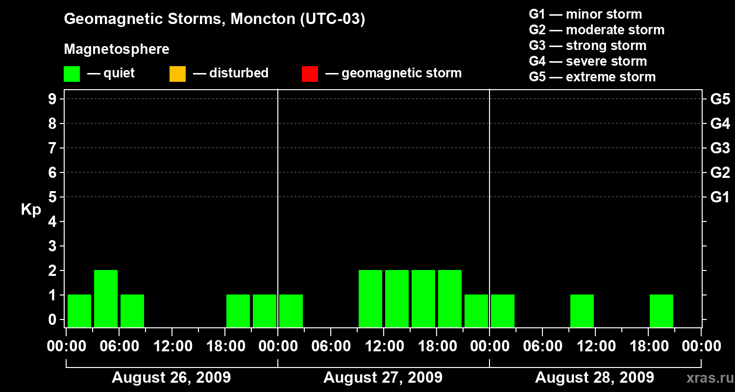 Geomagnetic storms in Moncton — Aug 28, 2009