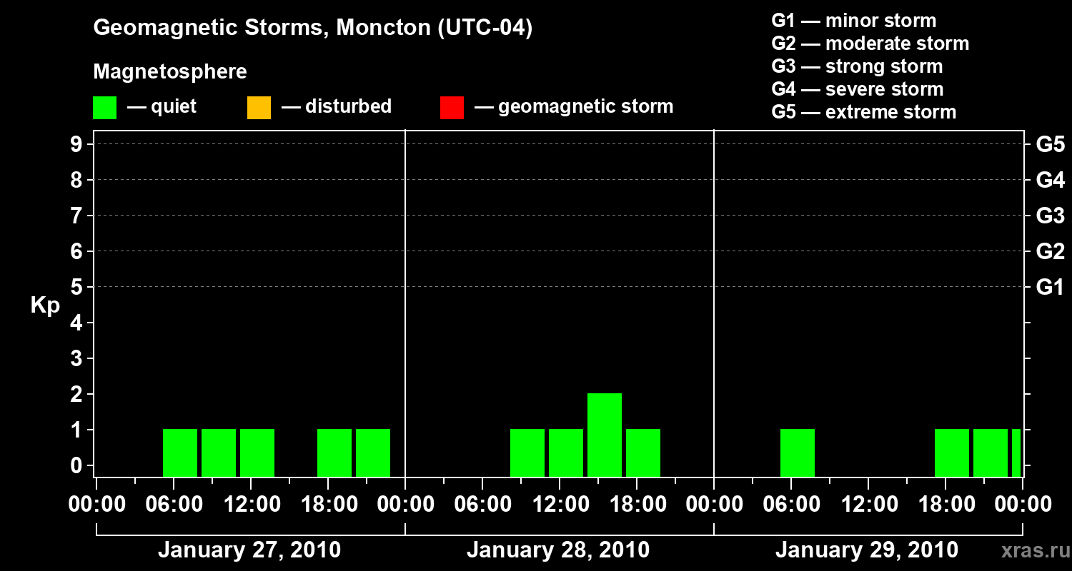 Geomagnetic storms in Moncton on Jan 29, 2010