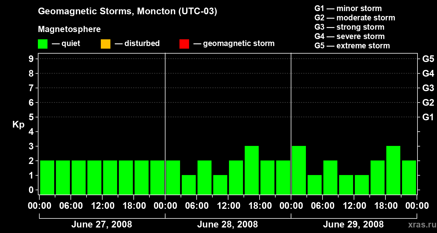 Geomagnetic storms in Moncton — Jun 29, 2008
