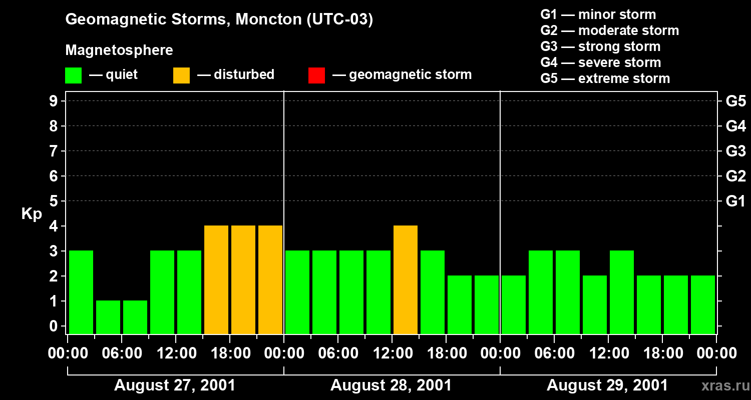 Geomagnetic storms in Moncton on Aug 29, 2001