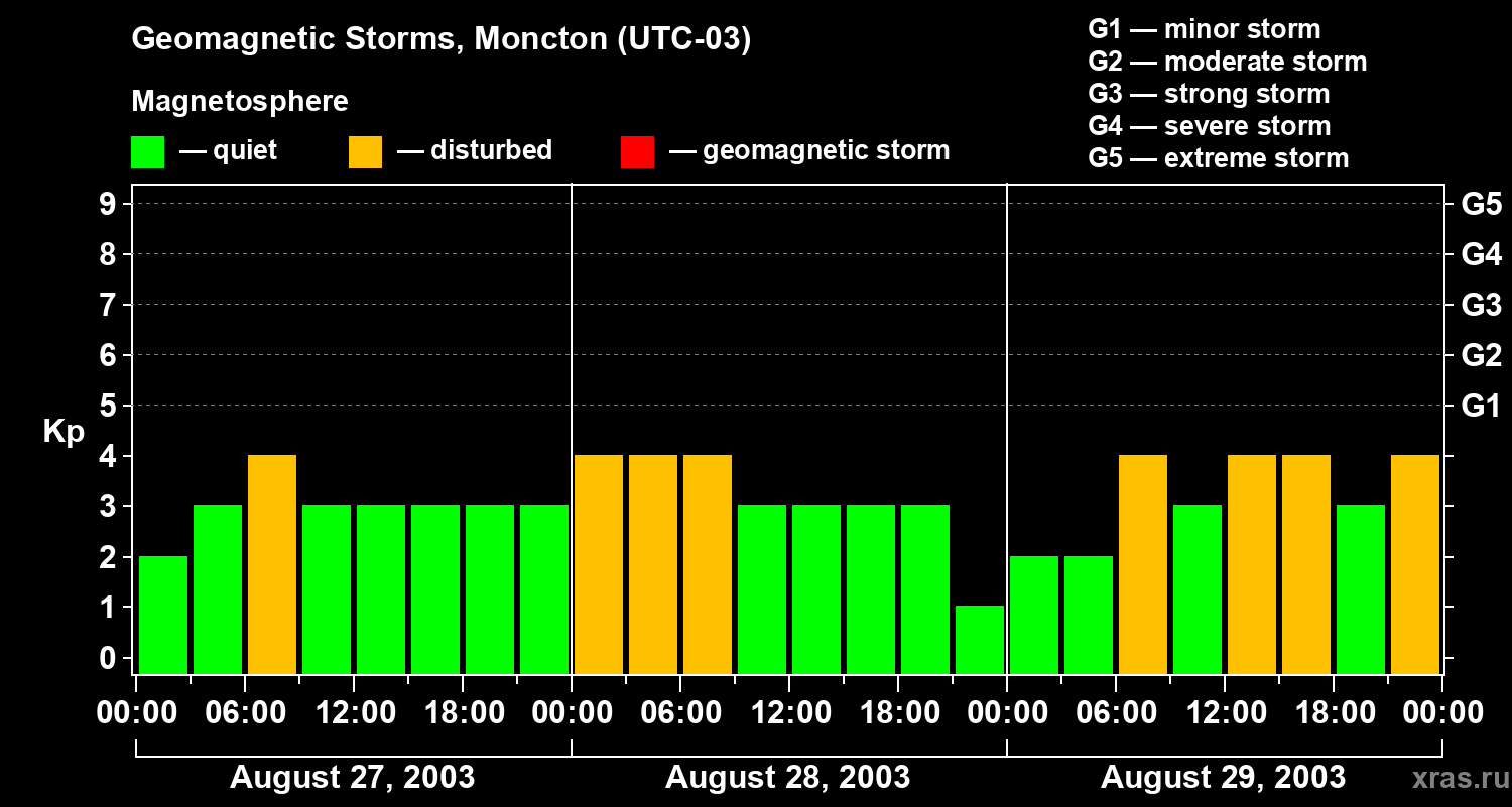 Geomagnetic storms in Moncton on Aug 29, 2003