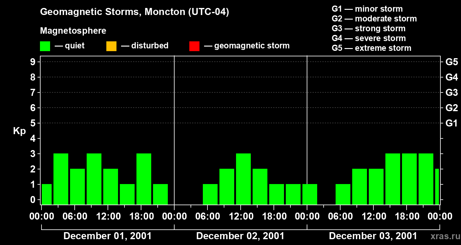 Geomagnetic storms in Moncton on Dec 03, 2001