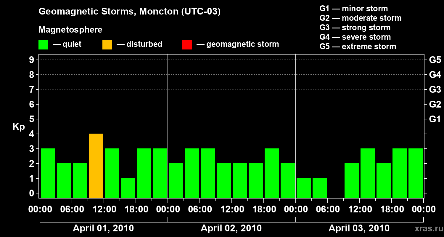 Geomagnetic storms in Moncton — Apr 03, 2010