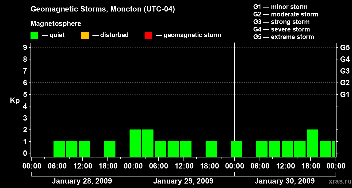 Geomagnetic storms in Moncton on Jan 30, 2009