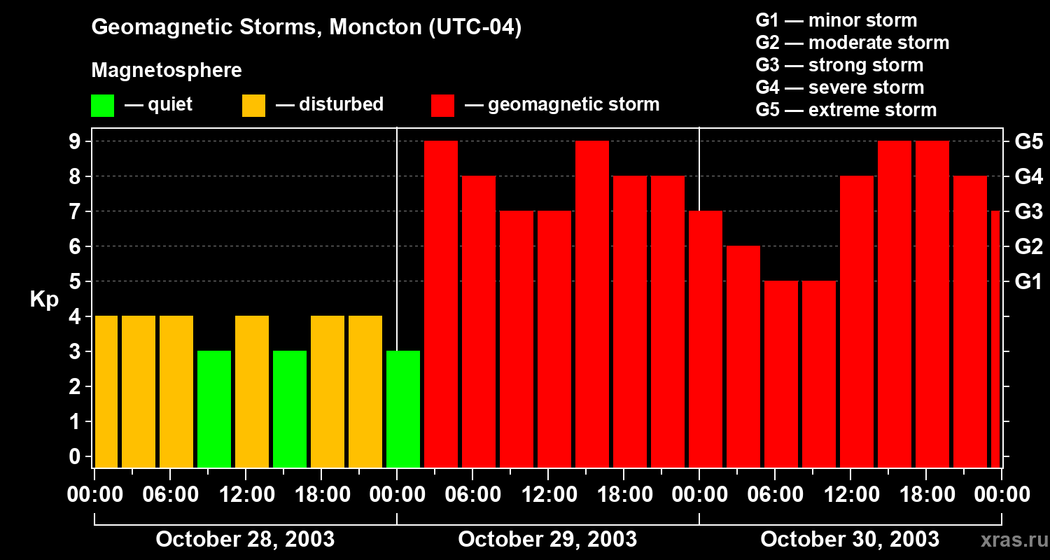 Geomagnetic storms in Moncton on Oct 30, 2003
