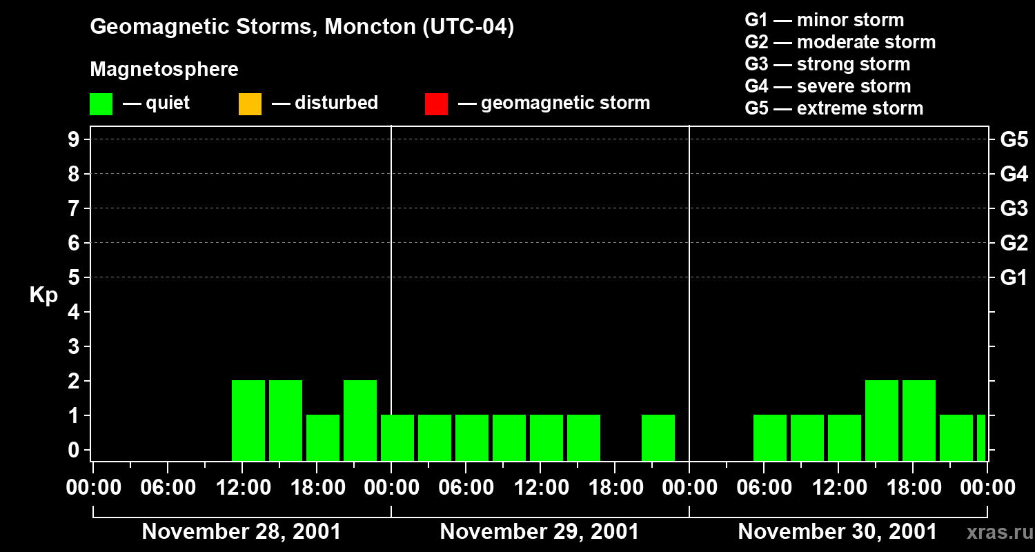Geomagnetic storms in Moncton on Nov 30, 2001