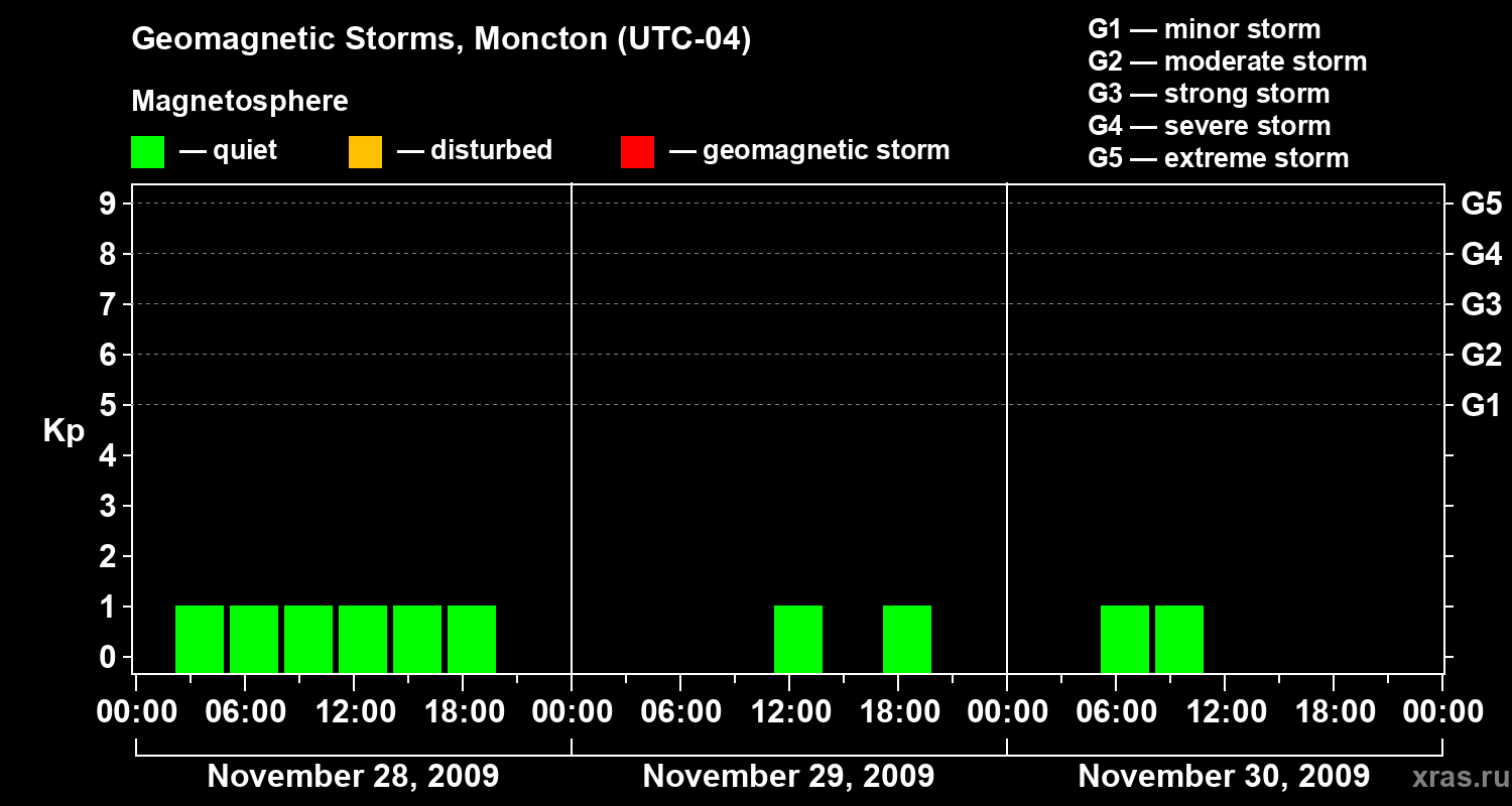 Geomagnetic storms in Moncton on Nov 30, 2009
