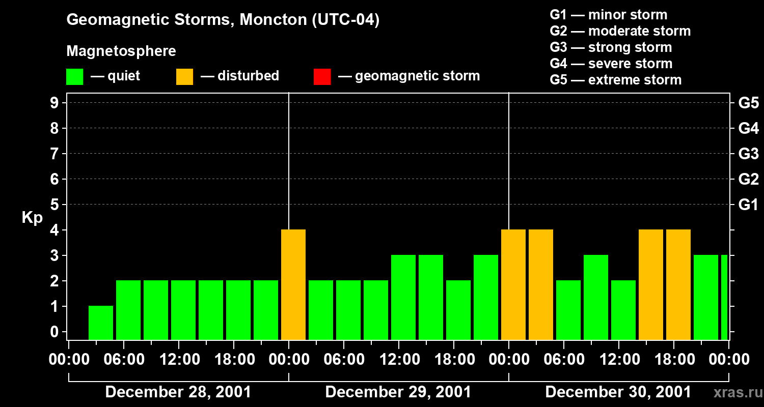 Geomagnetic storms in Moncton on Dec 30, 2001