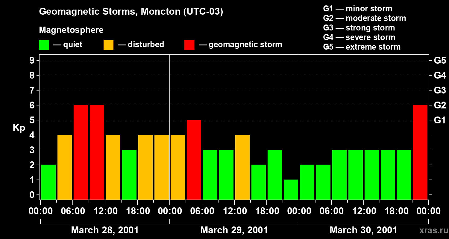 Geomagnetic storms in Moncton on Mar 30, 2001