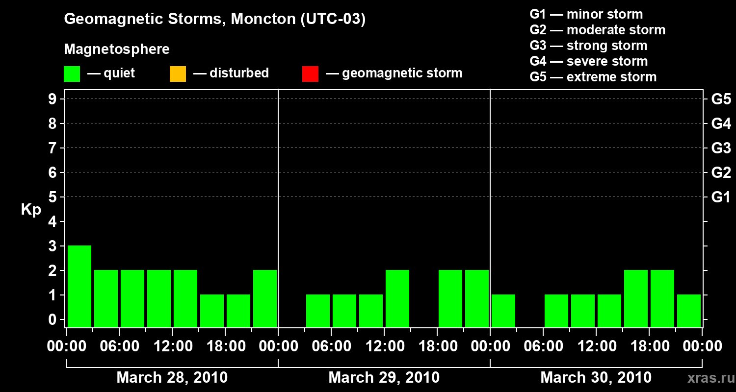 Geomagnetic storms in Moncton on Mar 30, 2010