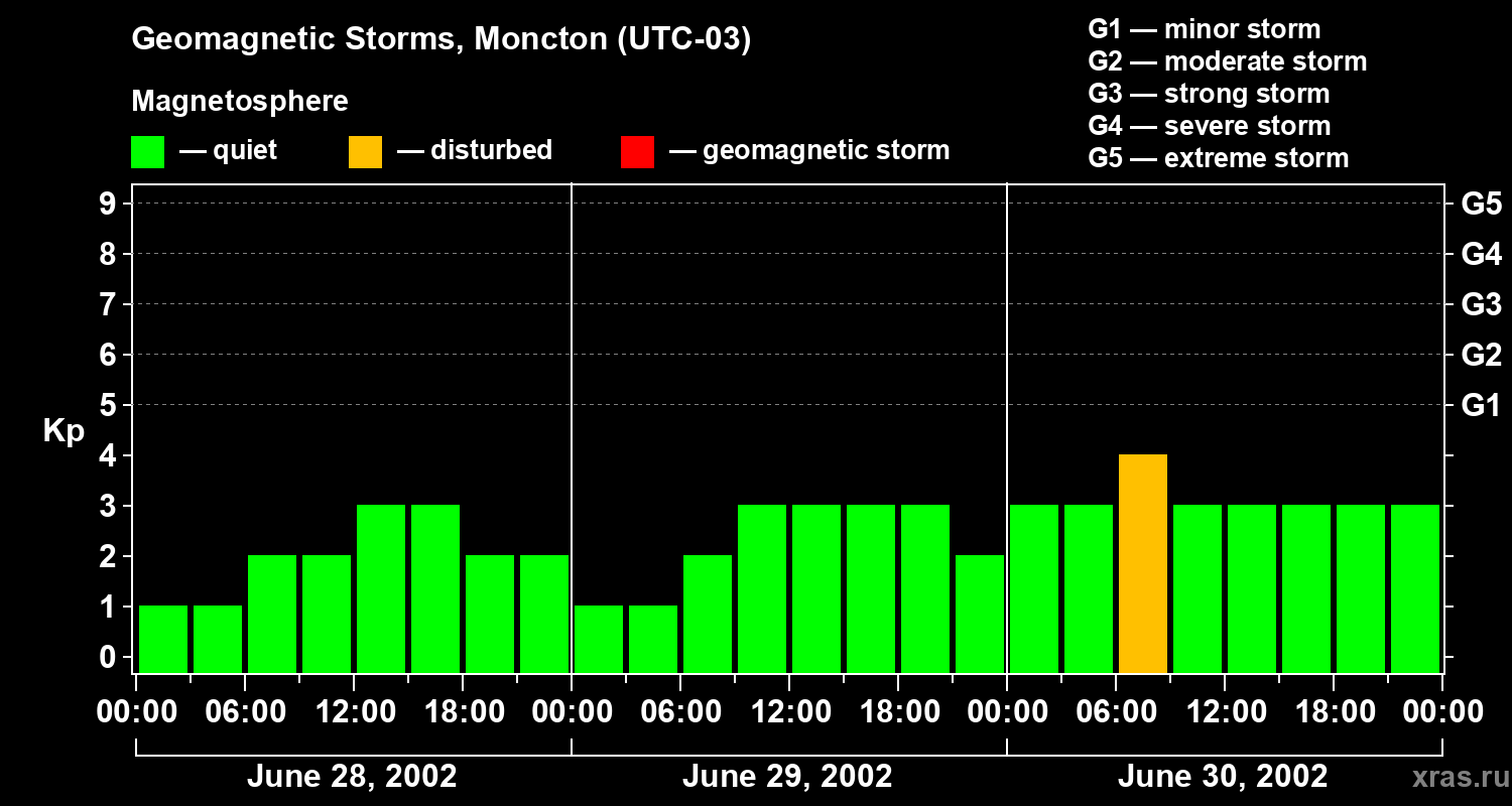 Geomagnetic storms in Moncton — Jun 30, 2002