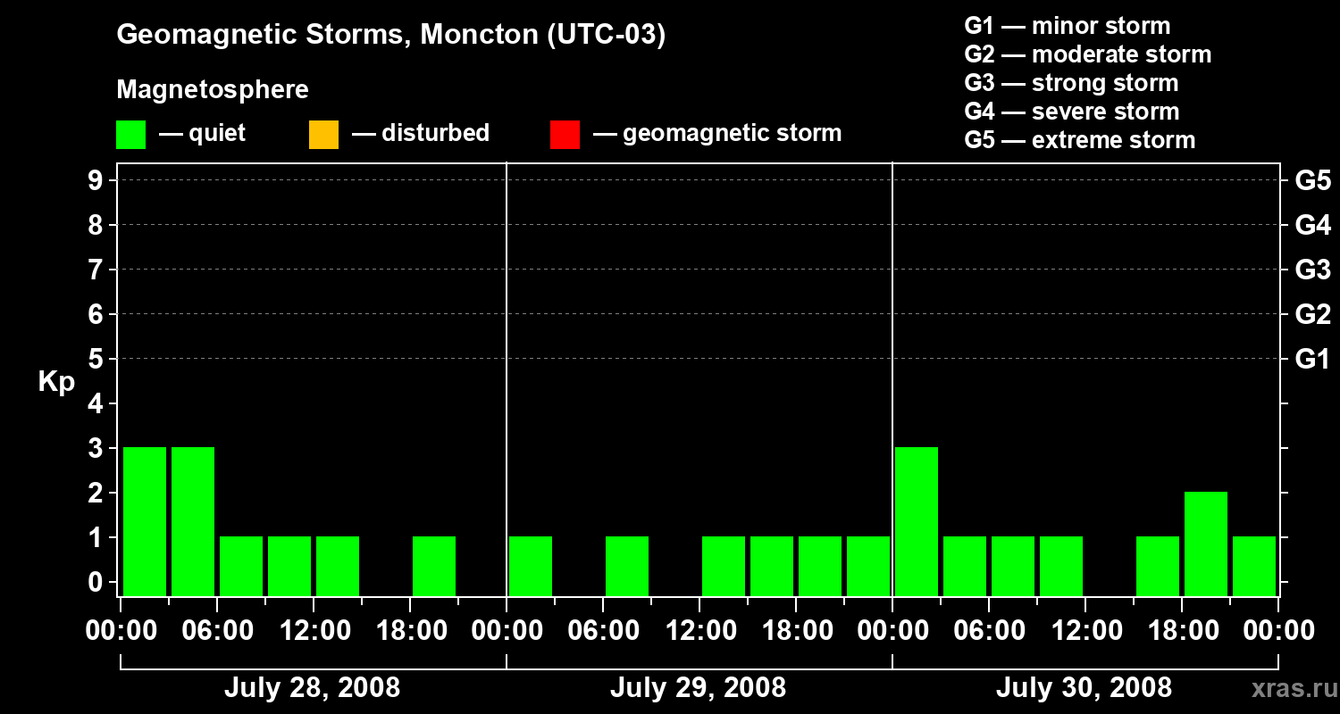 Geomagnetic storms in Moncton — Jul 30, 2008