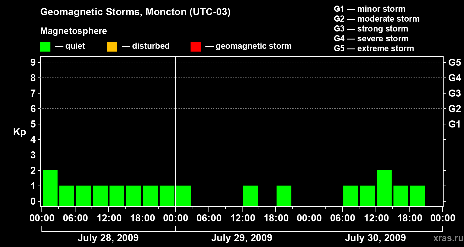 Geomagnetic storms in Moncton on Jul 30, 2009