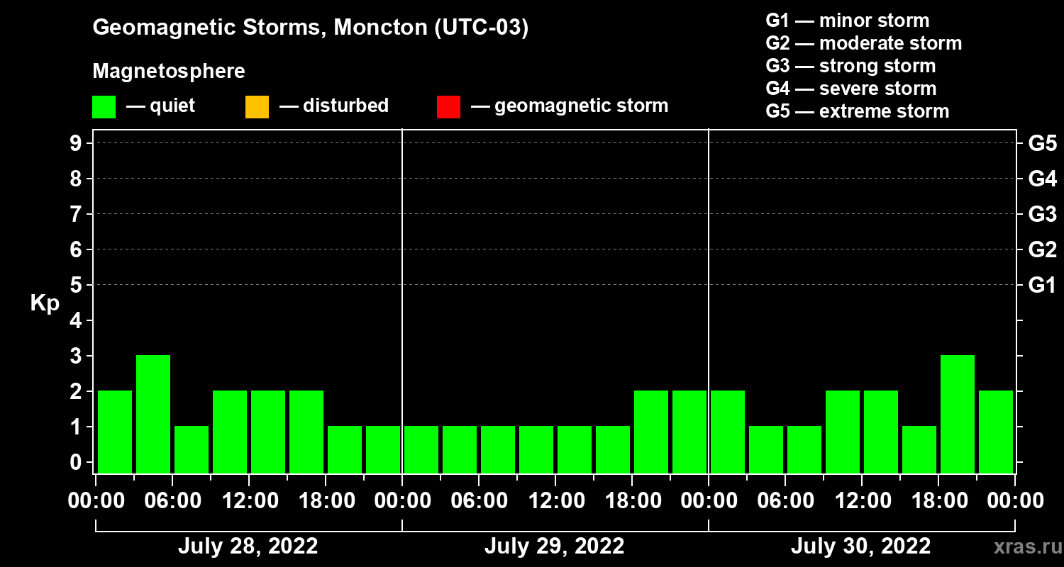 Geomagnetic storms in Moncton — Jul 30, 2022