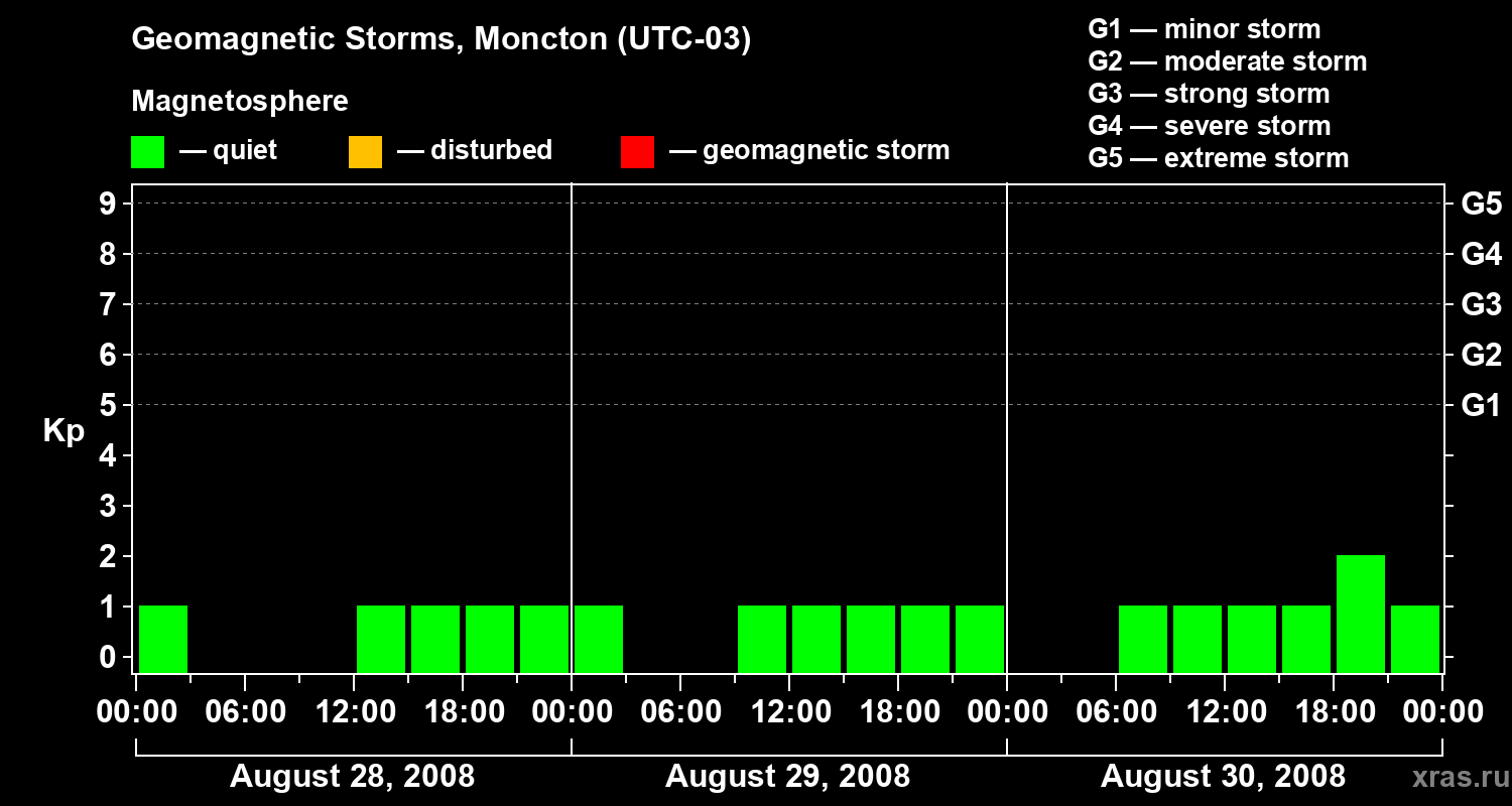 Geomagnetic storms in Moncton — Aug 30, 2008