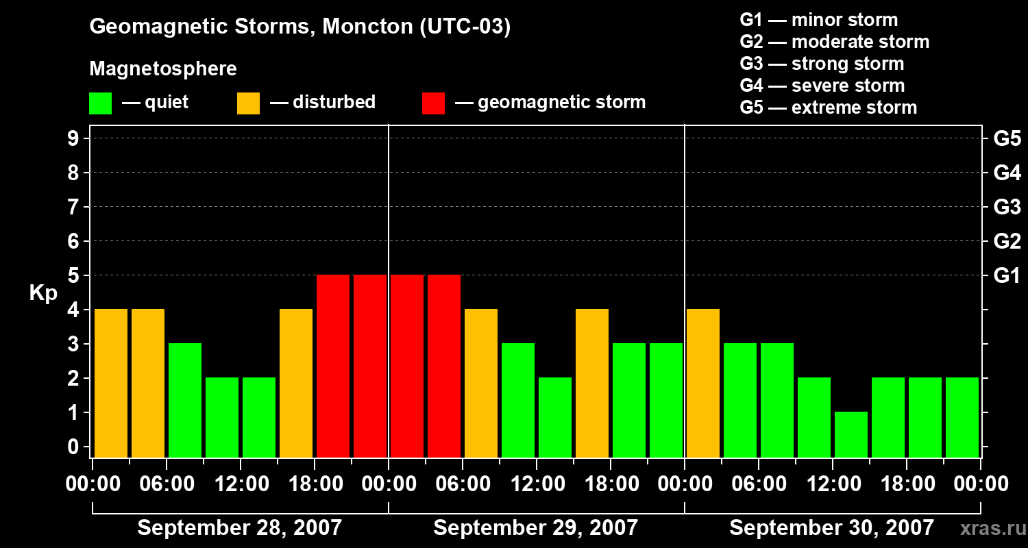 Geomagnetic storms in Moncton — Sep 30, 2007