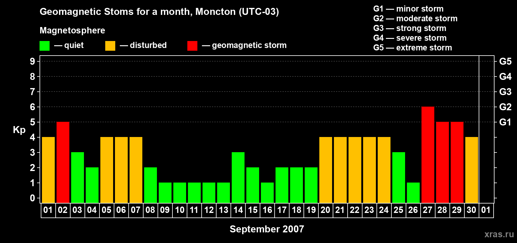 Geomagnetic storms in Moncton in September 2007