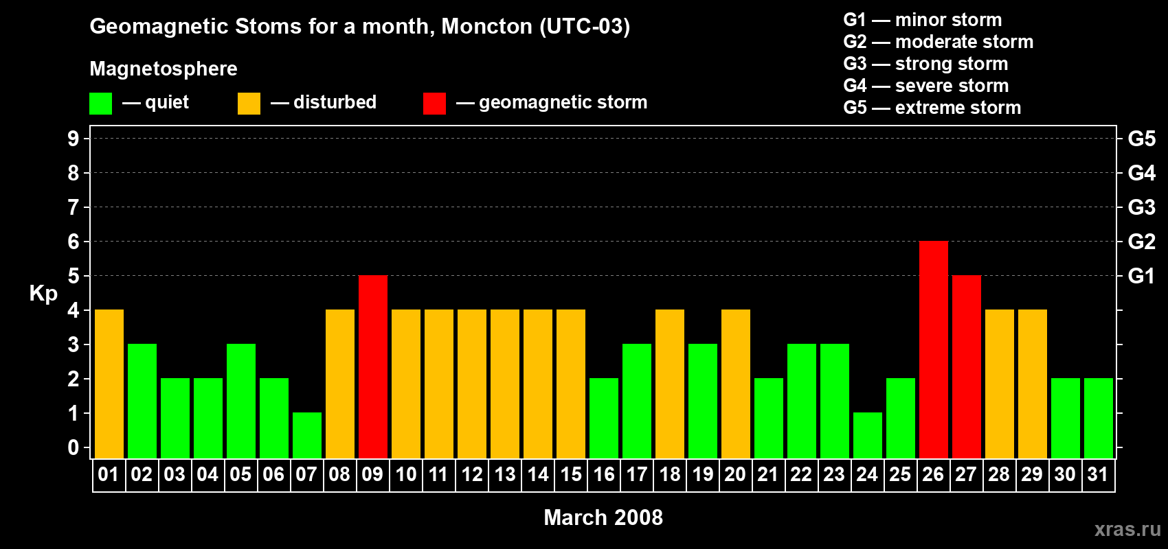 Geomagnetic storms in Moncton — Mar 31, 2008
