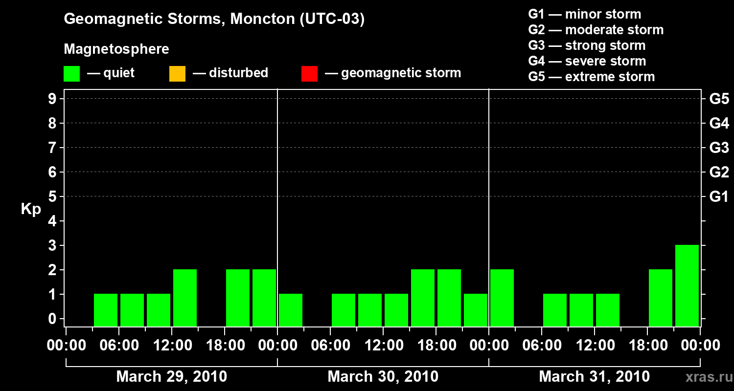 Geomagnetic storms in Moncton — Mar 31, 2010