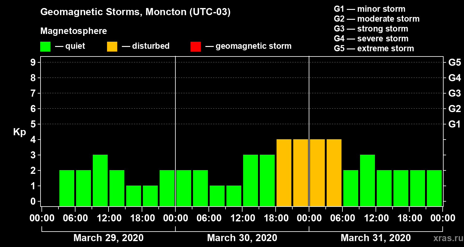 Geomagnetic storms in Moncton — Mar 31, 2020