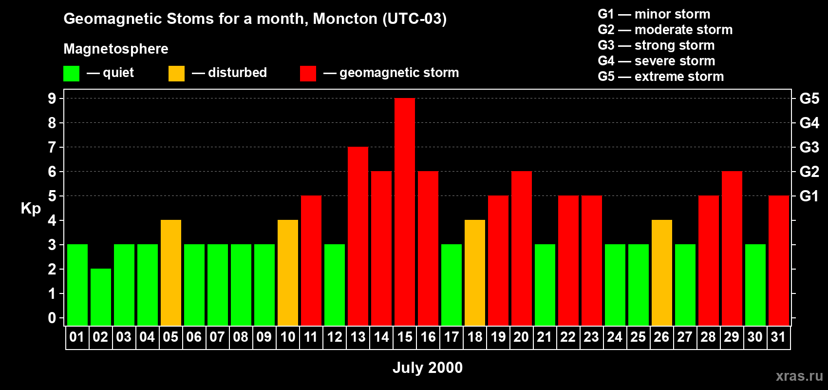 Geomagnetic storms in Moncton — Jul 31, 2000