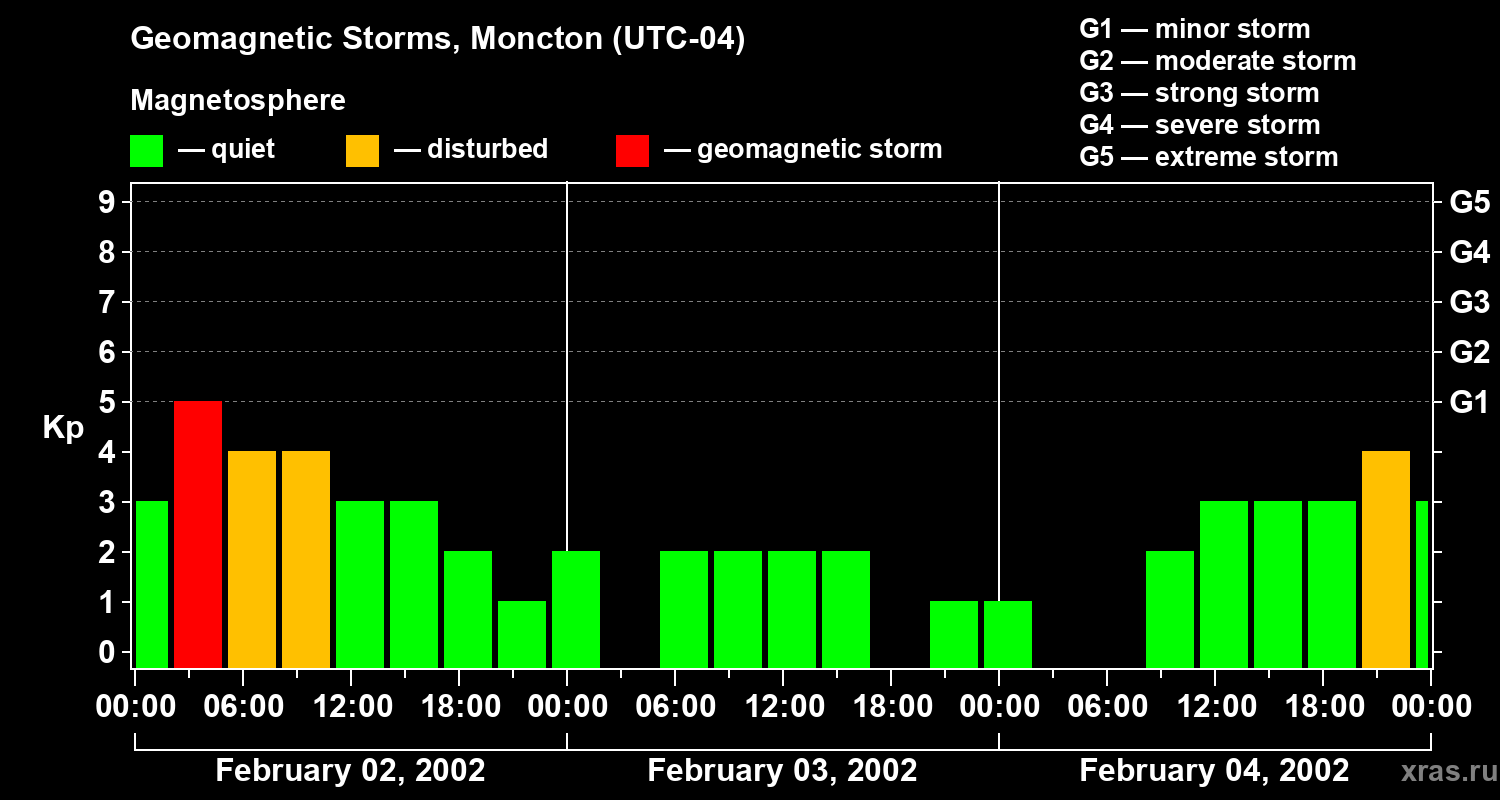 Geomagnetic storms in Moncton — Feb 04, 2002