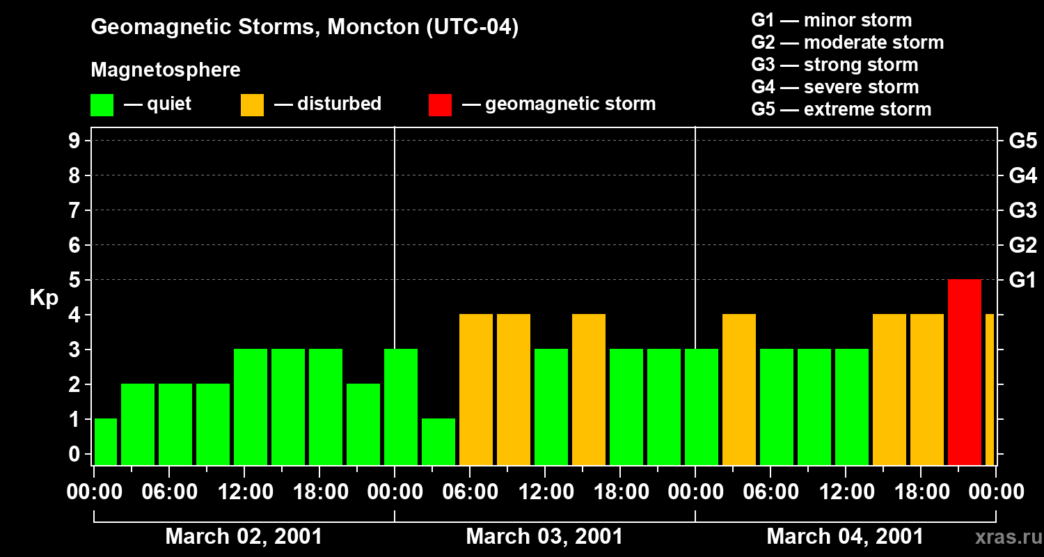 Geomagnetic storms in Moncton — Mar 04, 2001