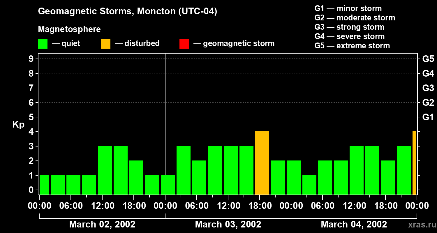 Geomagnetic storms in Moncton on Mar 04, 2002