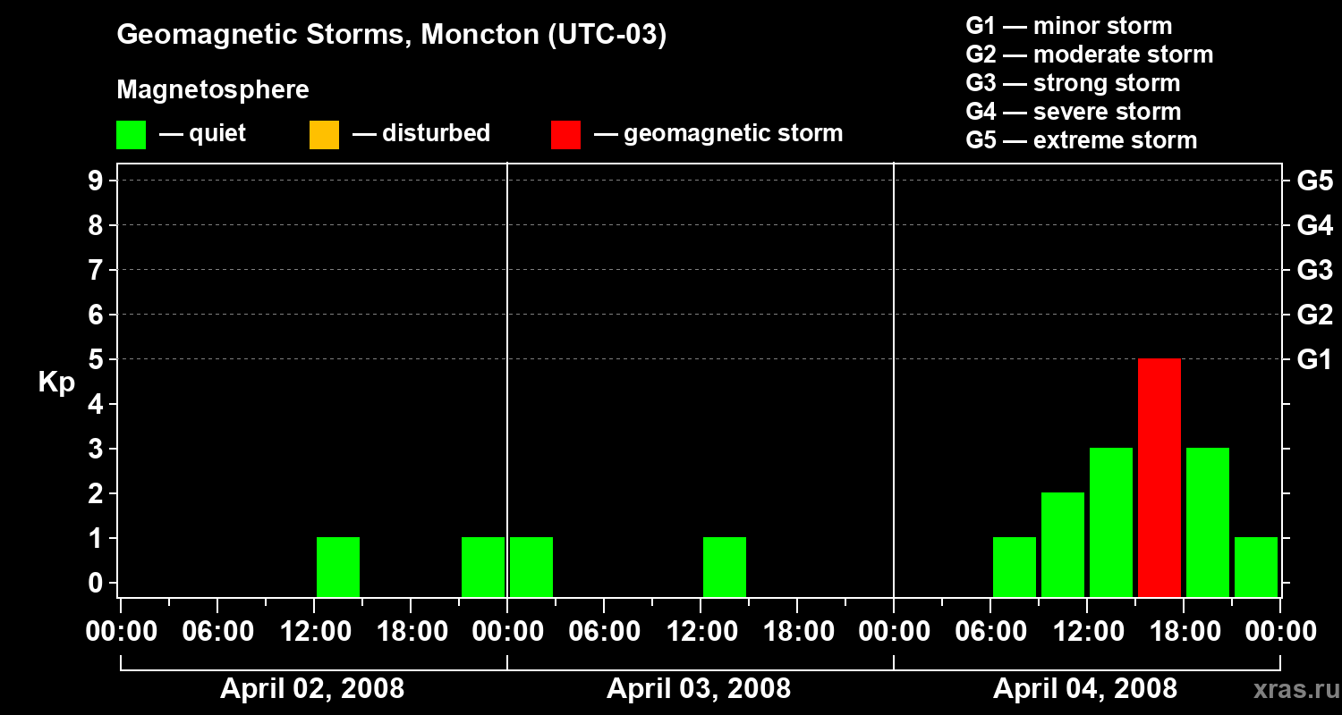 Geomagnetic storms in Moncton — Apr 04, 2008