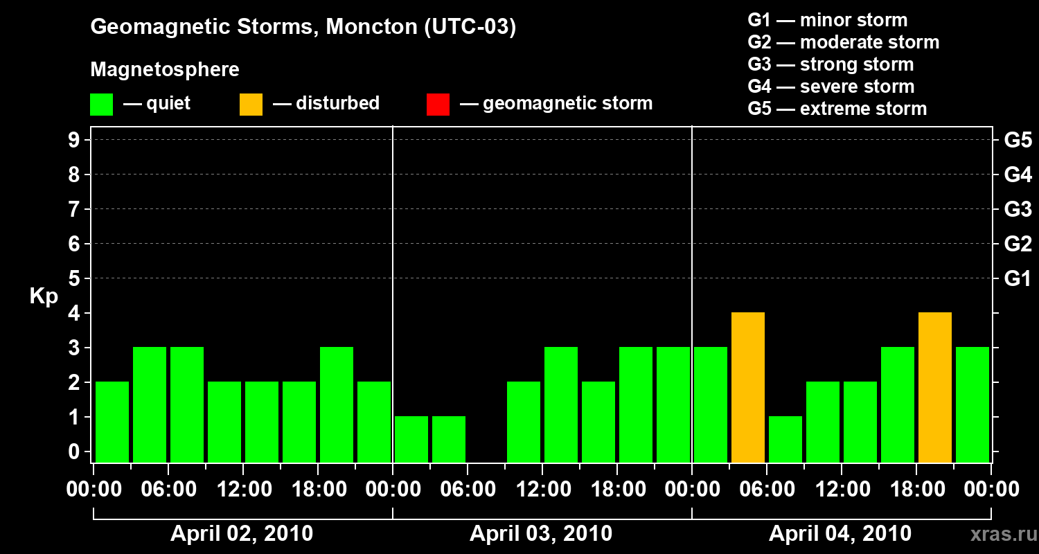 Geomagnetic storms in Moncton — Apr 04, 2010