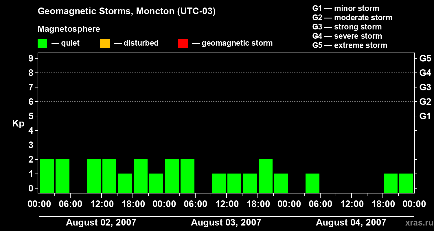 Geomagnetic storms in Moncton — Aug 04, 2007