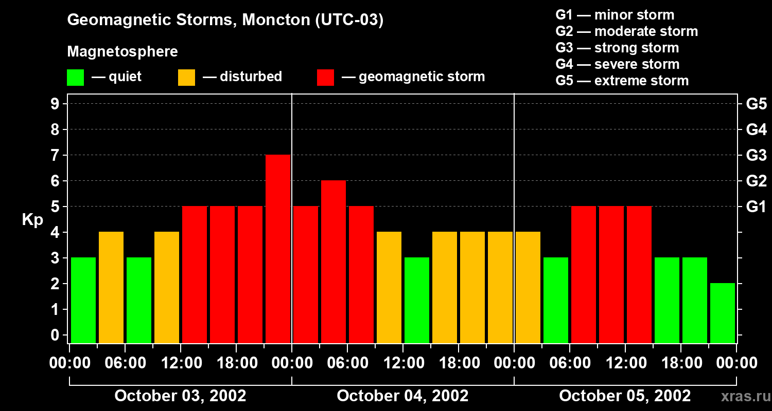 Geomagnetic storms in Moncton — Oct 05, 2002