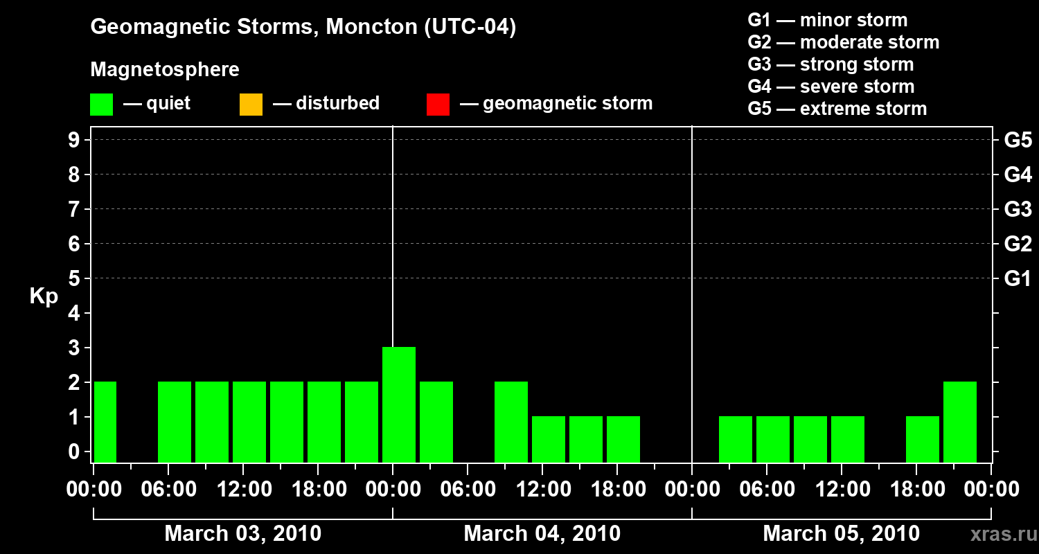 Geomagnetic storms in Moncton — Mar 05, 2010